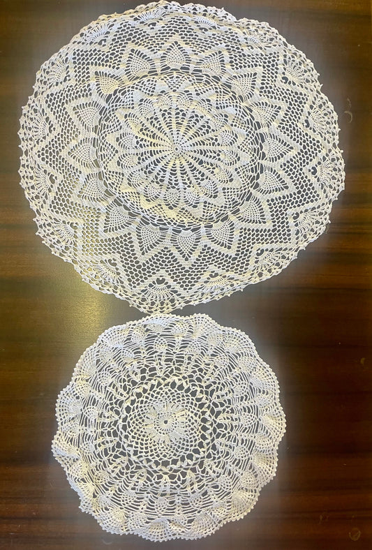 Hand-Crocheted White Cotton Vintage Doilies – Set of 2