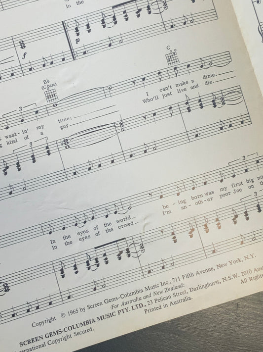 Live with friends Sheet Music/ words and music by Russell Morris & Brian Cadd