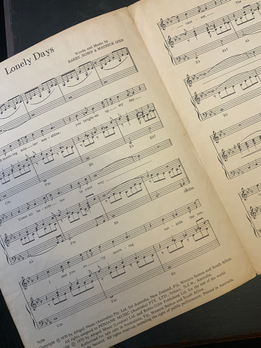 Lonely Days sheet music/ words and music by Barry, Robin and Maurice Gibb 1970