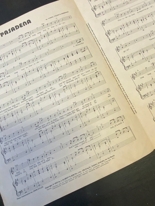 John Young Pasadena sheet music/ words and music by Vanda Young and Hemings 1972