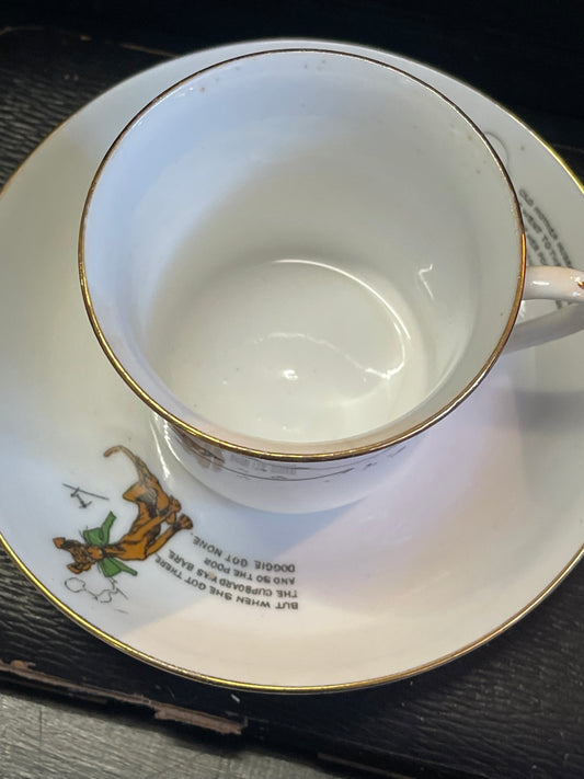Antique Salt & Nixon Longton Child’s Cup & Saucer – Little Bo Peep & Old Mother Hubbard (c.1897–1904)