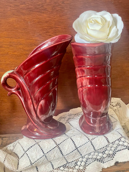Art Deco Australian Diana Pottery Pair of Cornucopia Style Jug Vase. c.1930s-40s