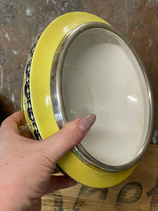 Art Deco Yellow Ceramic Bowl with Sterling Silver Rim – c.1930s