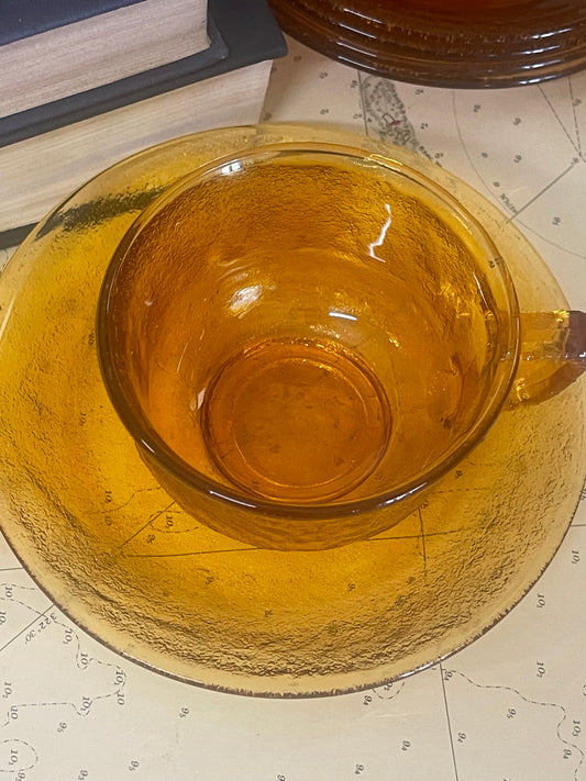 Arcoroc Amber Glass Tea Cups Set of 6 1970s
