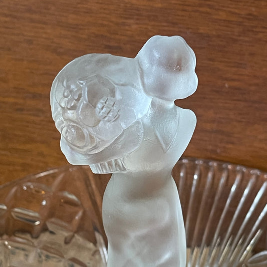 Czech Libochovice #1805 Lady Gathering Flowers Frosted and clear Glass Flower Frog & Bowl