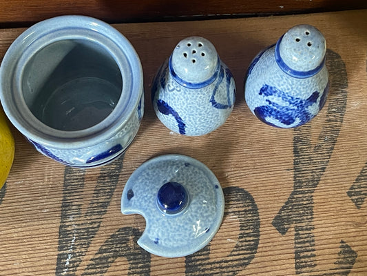 Cobalt Blue Salt Glaze Indigo Grey Dutch Stoneware Spice set with Salt and Pepper Shakers and Mustard Pot