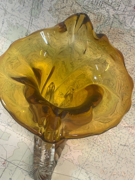 Mid-Century Amber & Clear Art Glass Cornucopia Vase / Jug – Sculptural Hand-Formed Glass