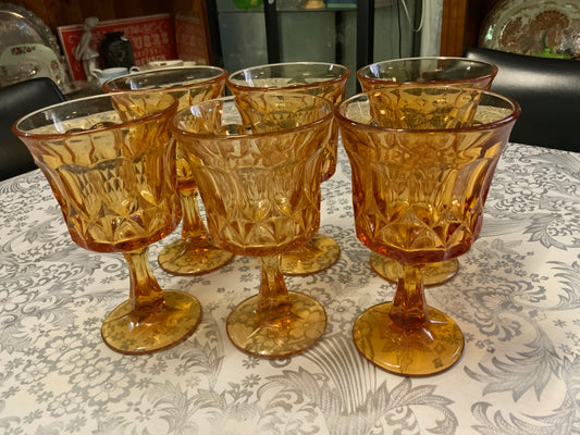 Set of Six Vintage Amber Pressed Glass Goblets – c.1970s