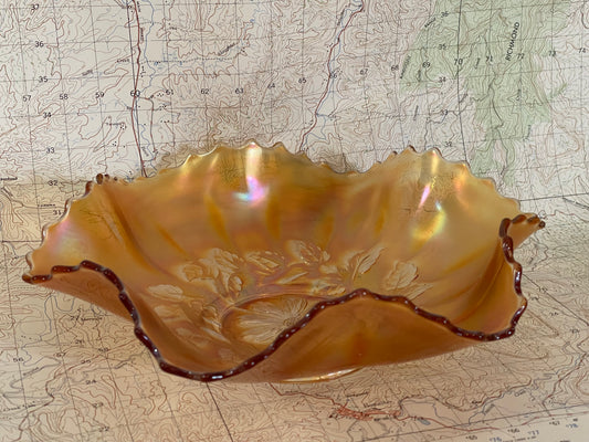 Antique Marigold Carnival Glass Bowl – Daisy & Leaf Pattern