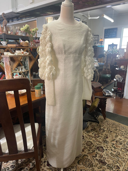 Vintage 1960s off white maxi wedding dress with flower sleeves size 8-10