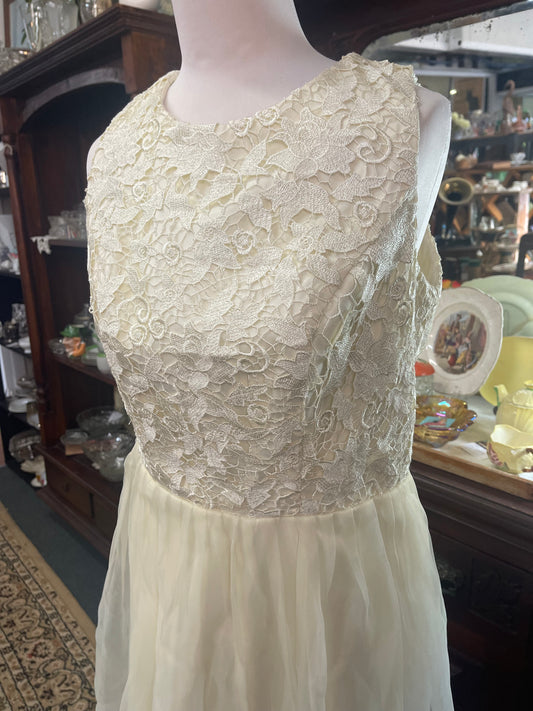 Vintage 1980s cream lace and chiffon prom dress size 12-14