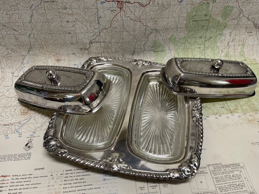 Vintage Silverplate Double Butter Dish Set with Tray - Atlanta Plate by Paramount (c.1940s–1950s)
