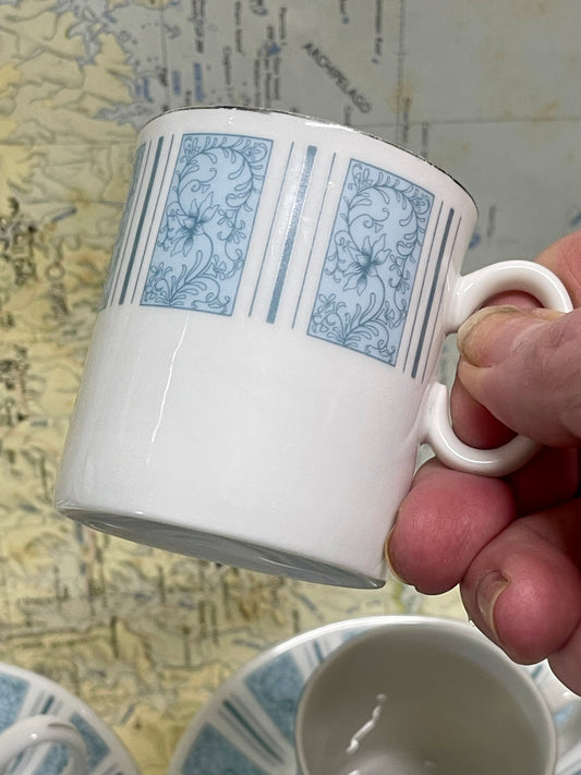 Blue Pattern Espresso Cups & Saucers — Set of 4 (1980s)