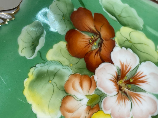 Vintage Noritake Hand-Painted Green Floral Serving Dish (c.1940s–50s)