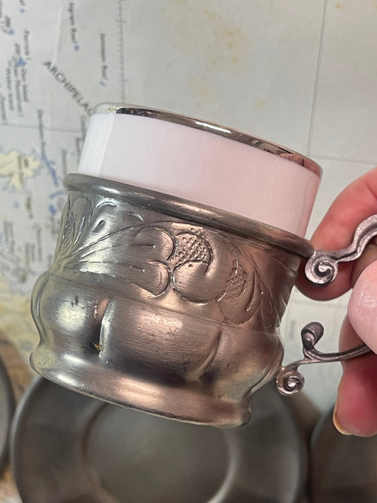 Vintage Rosenthal Demitasse Set with Pewter Holders — Set of Six (c.1950s–70s)