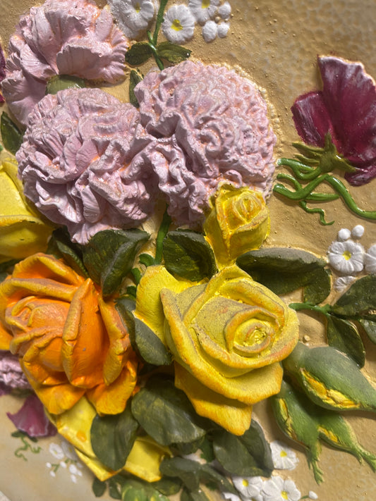 Vintage Chalkware Floral Wall Plate – Large Raised Flower Design