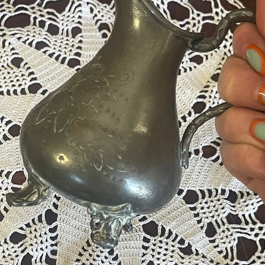 Victorian Pewter Cream Jug – Engraved Floral, c.1890