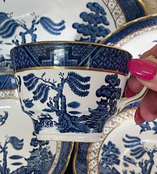 Booths “Real Old Willow” Tea Set – Service for 4 (England, Blue & White with Gilt)