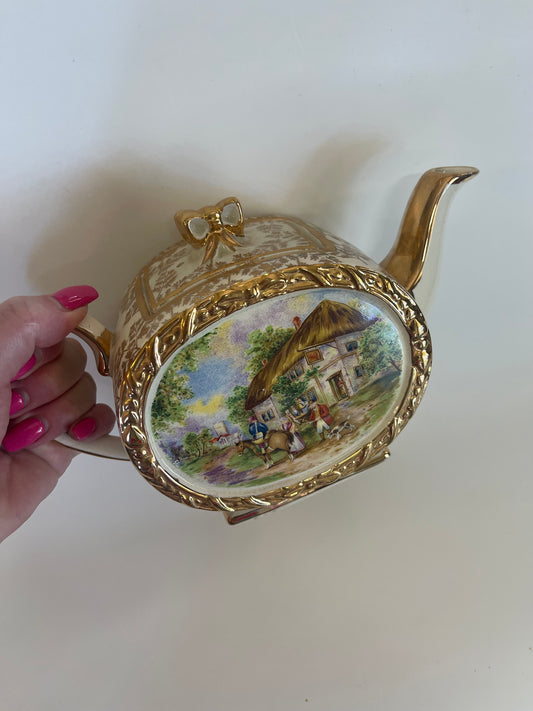 Vintage 1930s Sadler Barrel Tea Pot with Country Tavern Scene