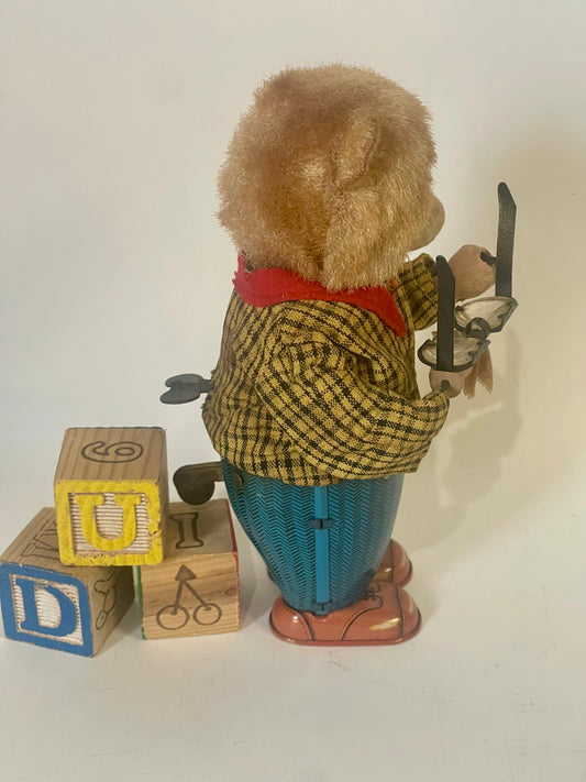 Vintage Tin Litho Bruno the Spectacle Bear Wind Up Toy