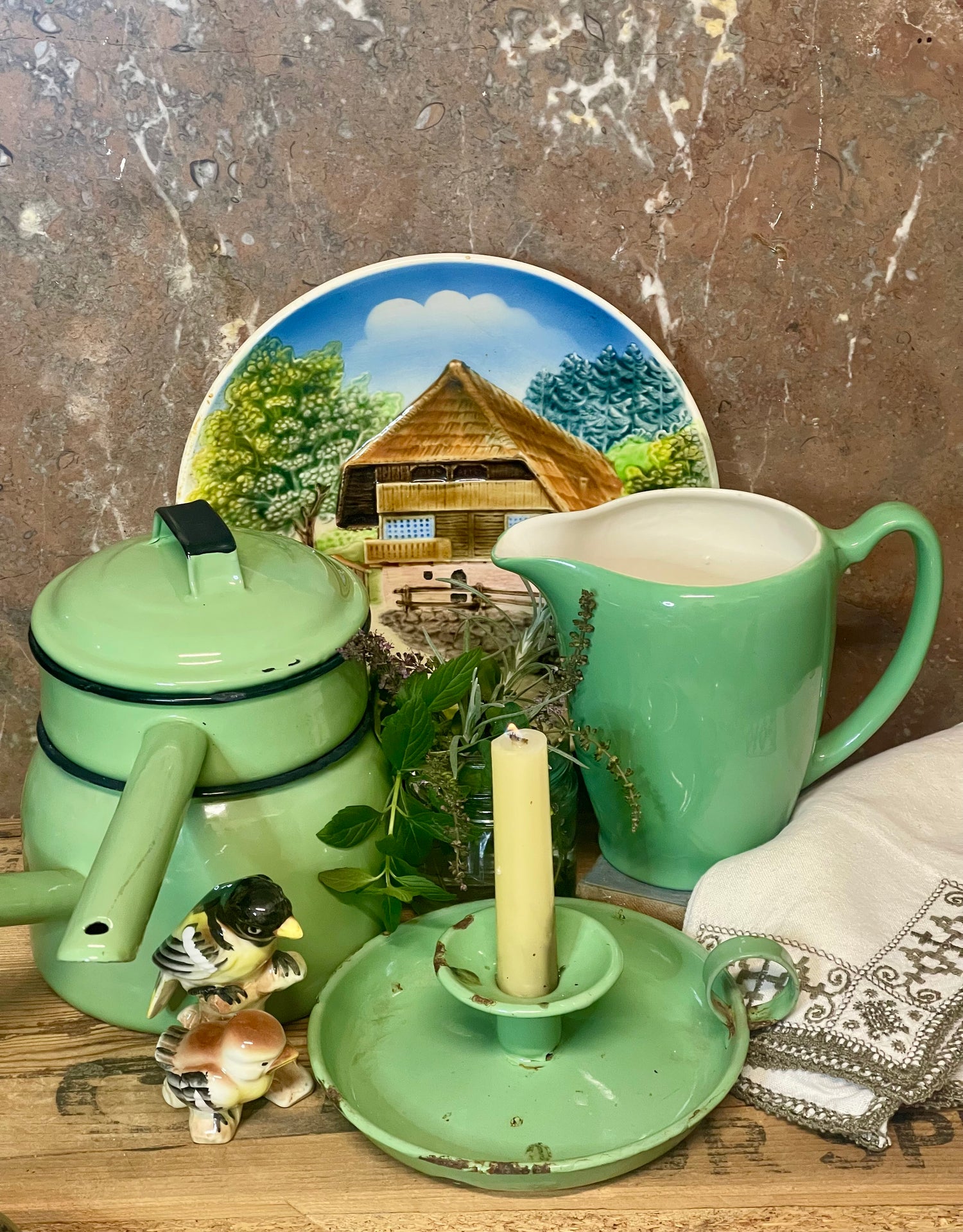 I’m also currently writing my first book, Vintage is the New Green — a practical guide to eco-friendly decorating with vintage finds. It blends tips from years of shopkeeping with personal stories, showing how to choose, style, care for, and eventually let go of vintage treasures. The book will be published in June 2025, and I can’t wait to share it with you.
