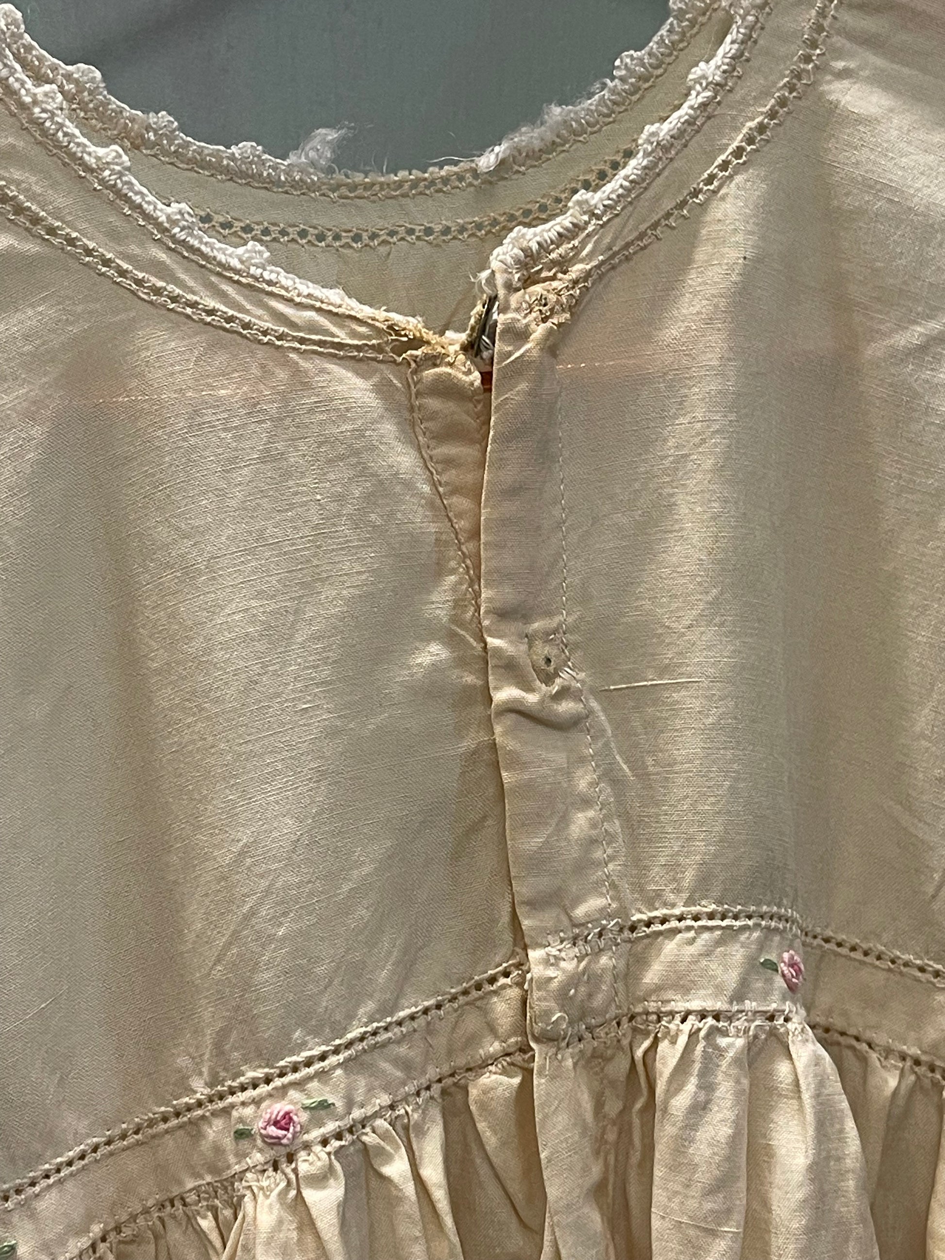 Hand-Embroidered Baby Dress – 1930s Heirloom Rosebud Trim