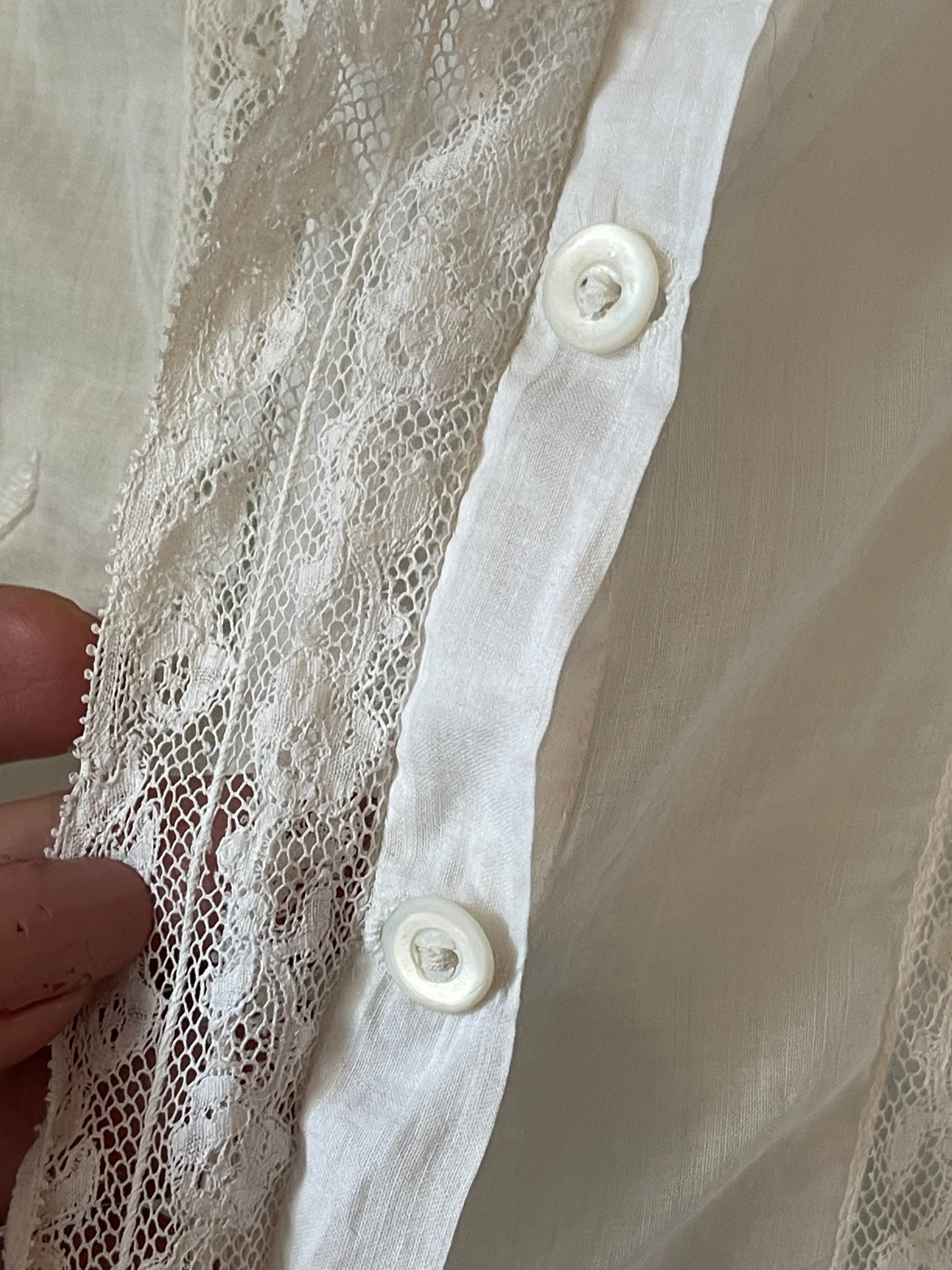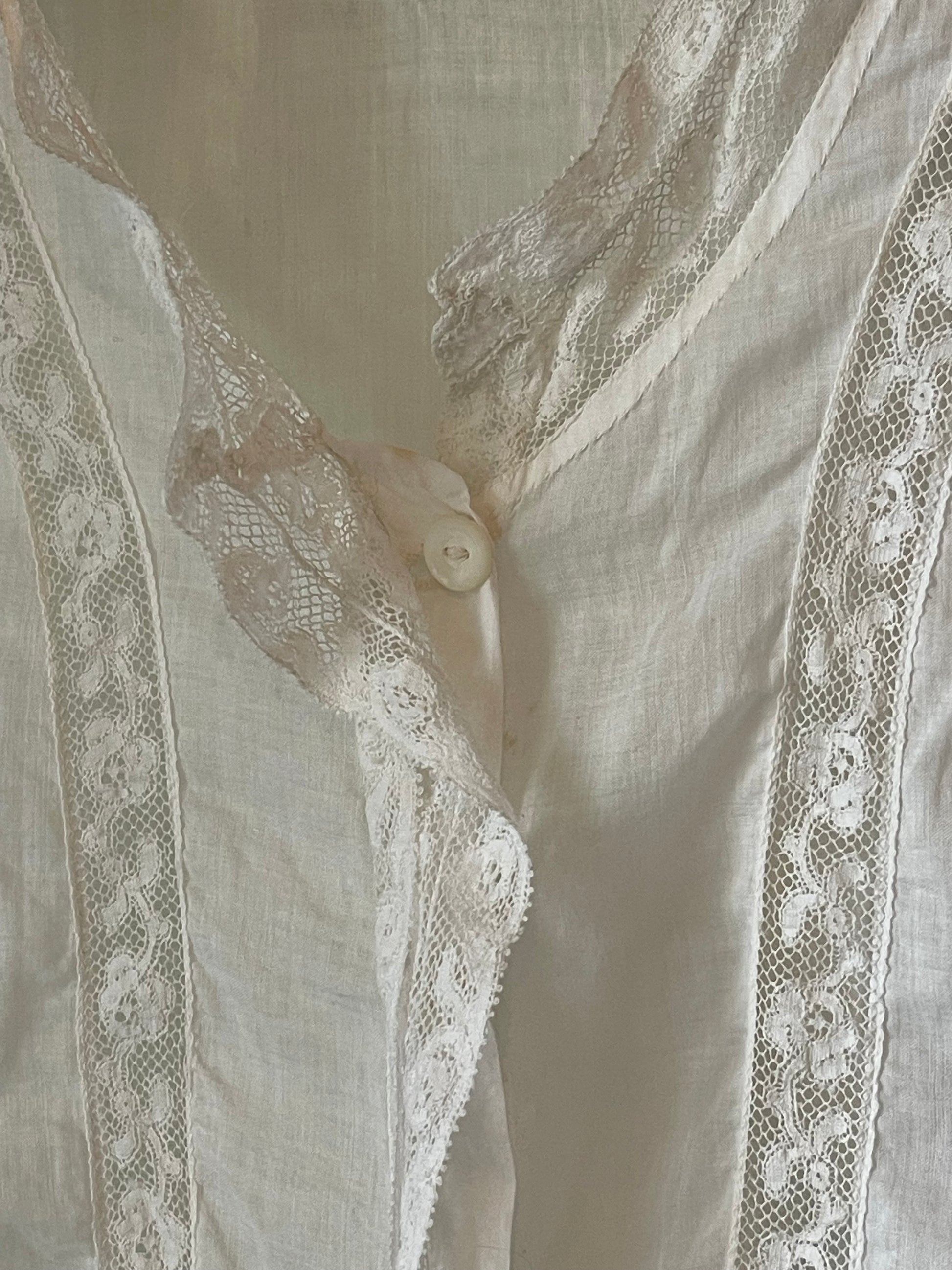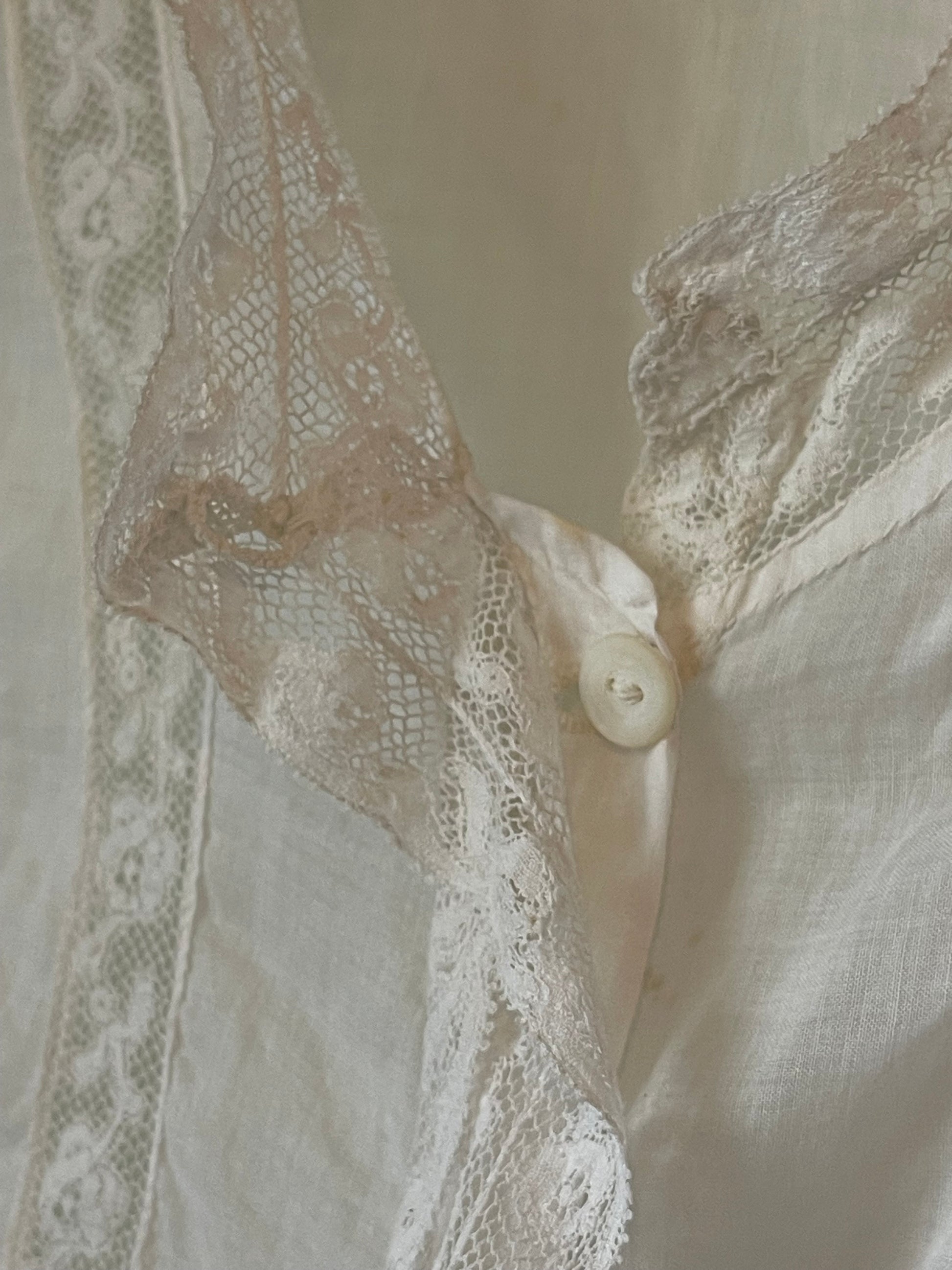 A whisper of a blouse, handmade in fine cotton lawn between the Edwardian and early 1920s eras.