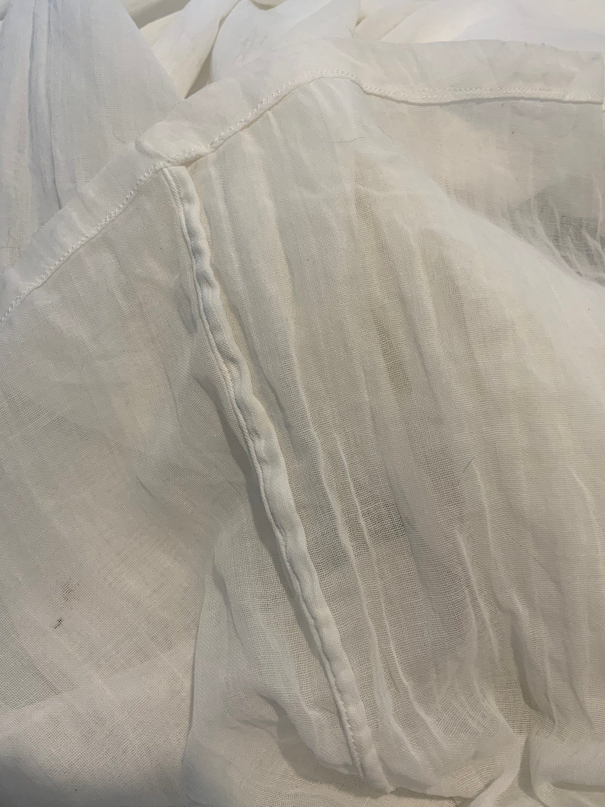 - White cotton lawn with broderie anglaise and lace trim and French seams