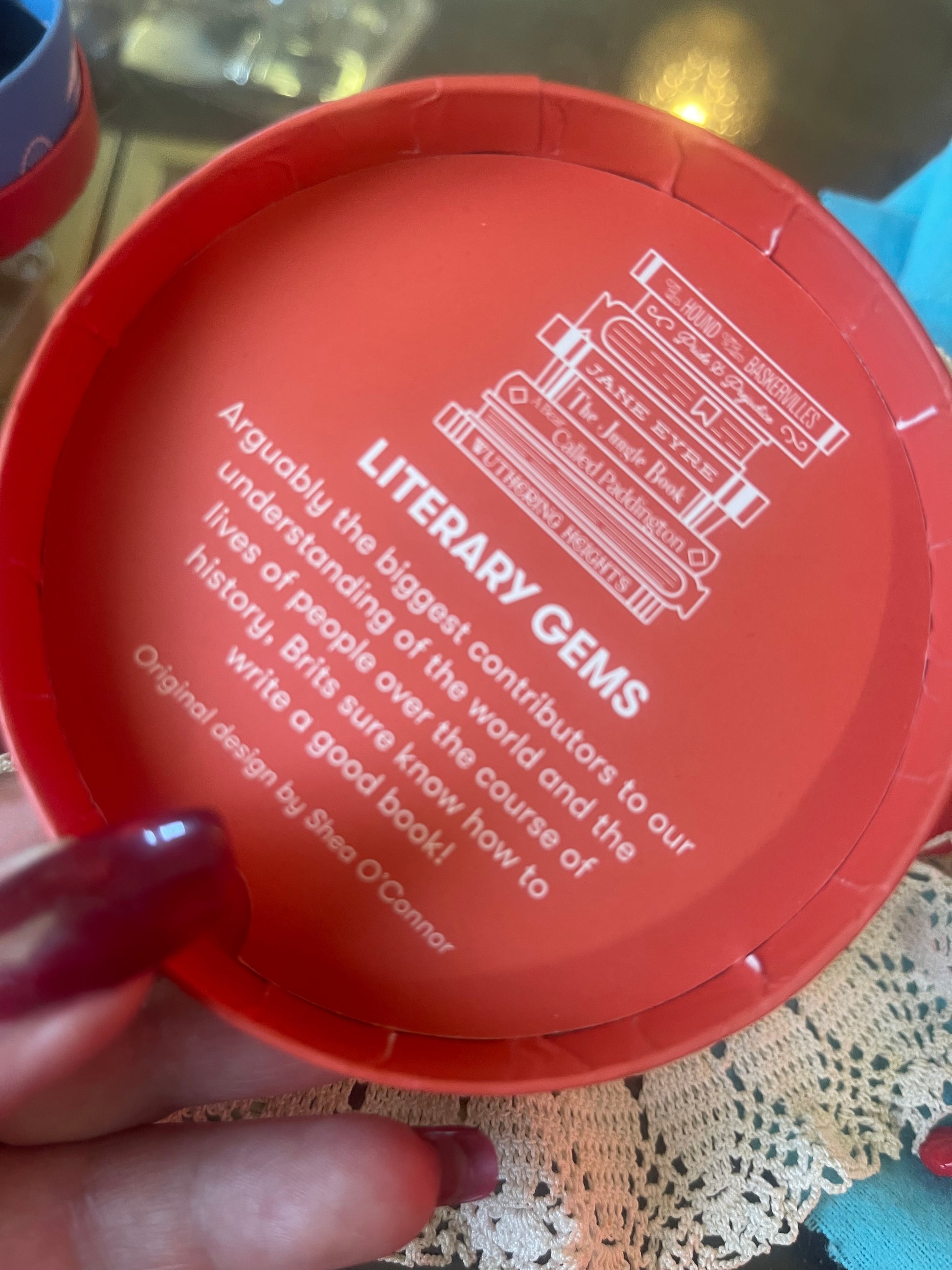 Featuring a charming stack of literary favourites including Pride & Prejudice, Jane Eyre, The Hound of the Baskervilles, Wuthering Heights, The Jungle Book, and A Bear Called Paddington, this piece is especially treasured by readers, teachers, and collectors of bookish design.