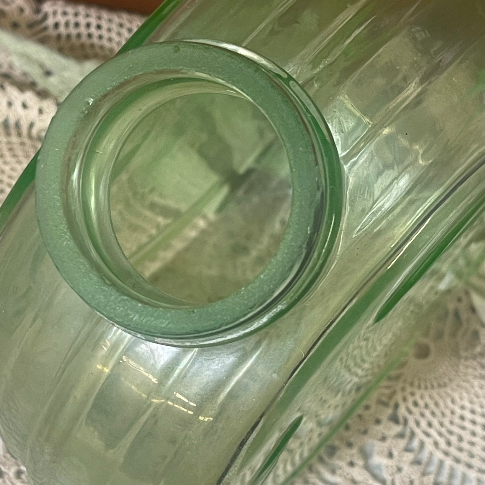 Not all uranium glass bottles were created equal — this one has that rare clarity and Deco curve that collectors dream of. It’s one of those pieces that glows like something from another world.