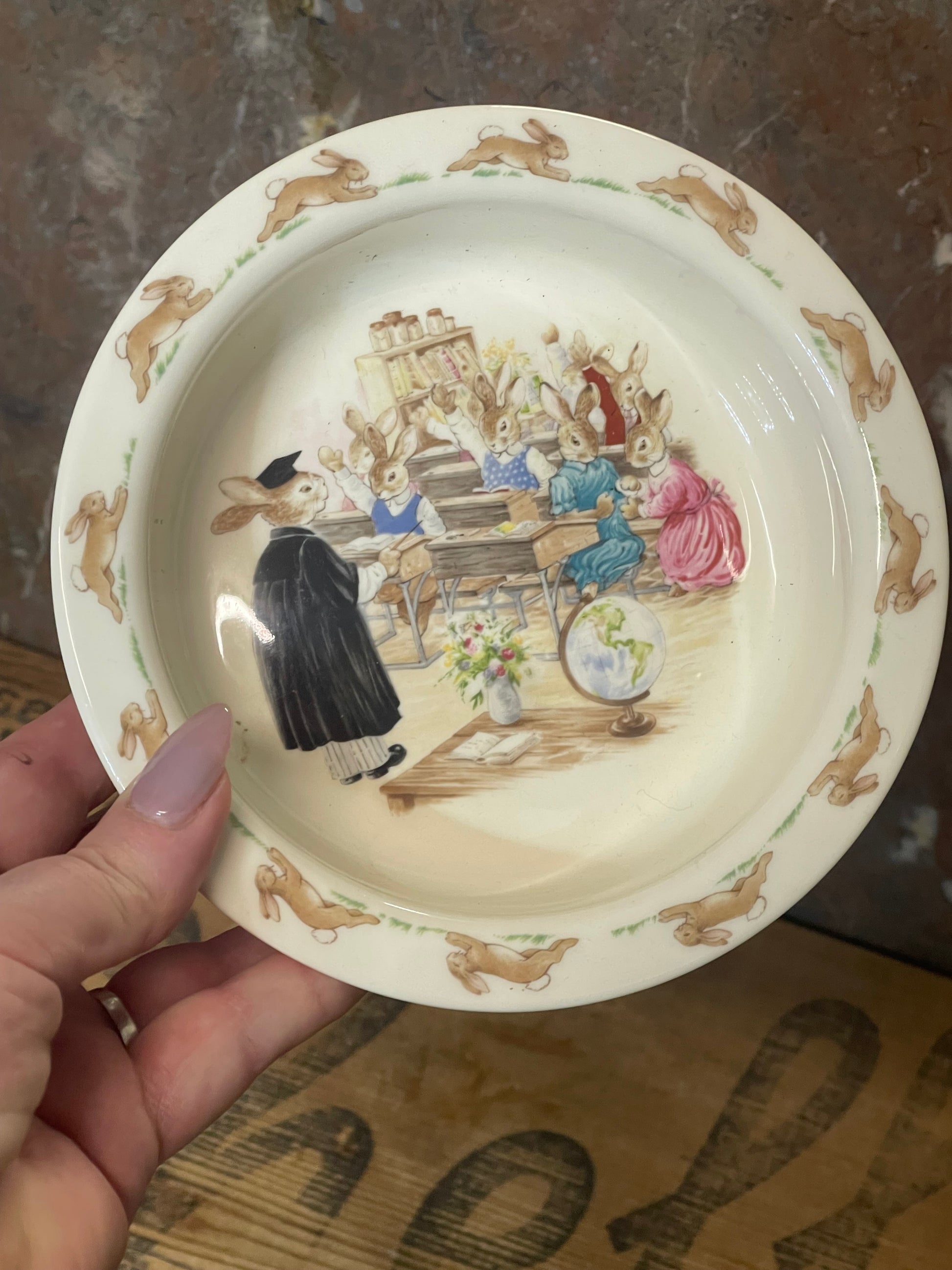 Royal Doulton Bunnykins Baby Bowl – School Scene (1988)