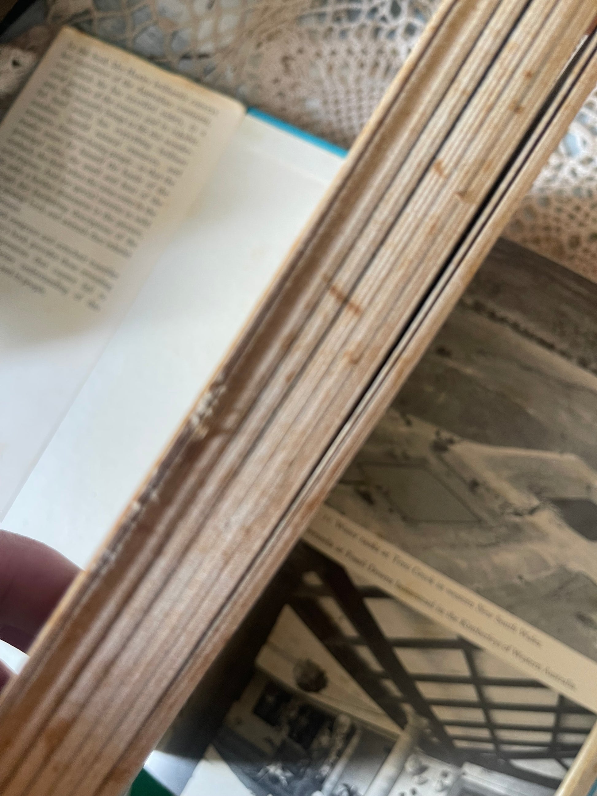 This first edition hardcover (Chatto & Windus, London, 1967) is a richly illustrated journey across the Australian landscape, featuring original photographs and a striking mid-century dust jacket in turquoise and ochre tones. The cover artwork alone evokes the spirit of discovery — a perfect piece for collectors of Australian travel writing or vintage literary art.