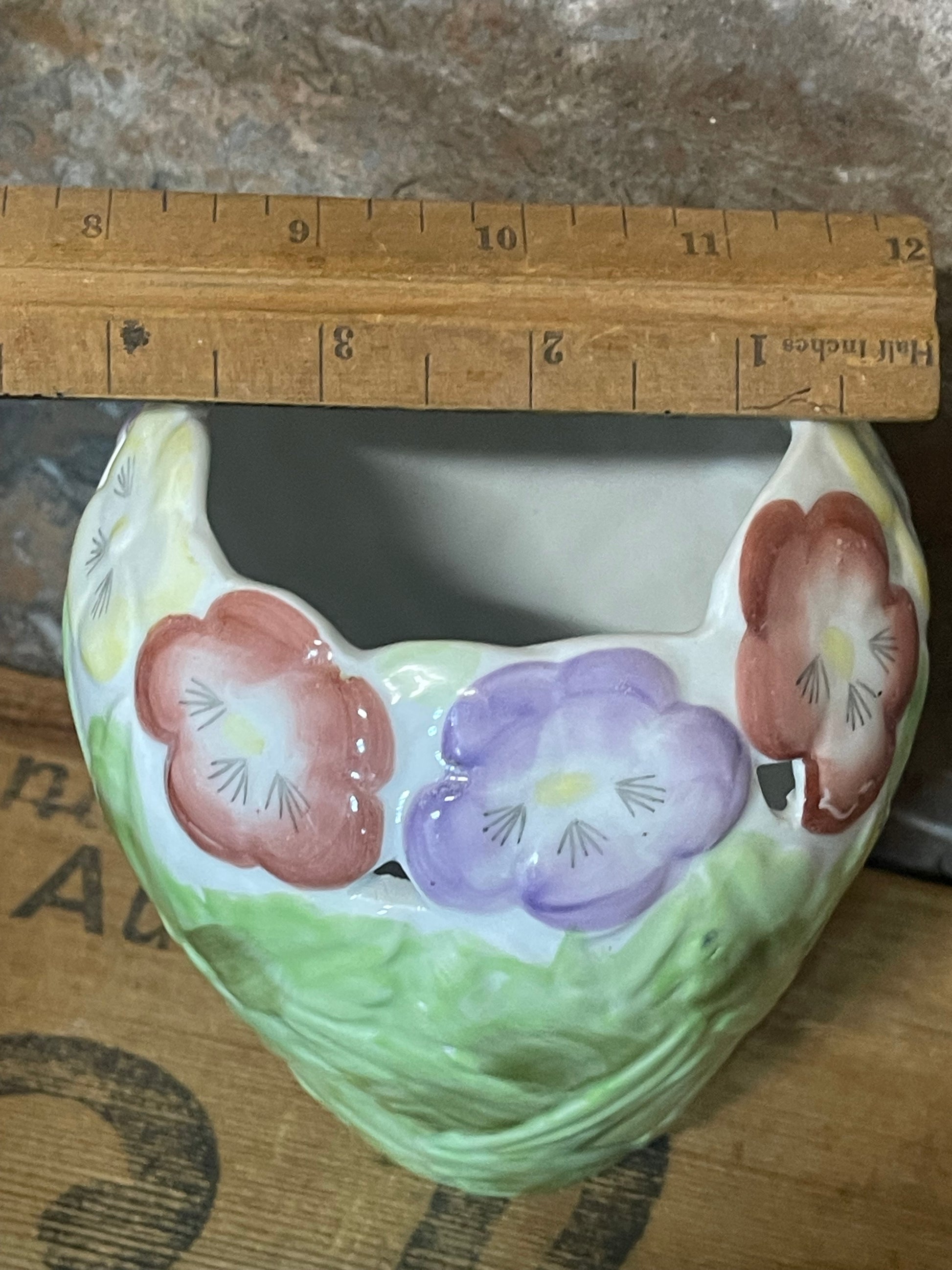 Unmarked base, typical of mid-20th century hand-painted ceramics. A sweet addition to any collection of vintage pottery or floral homewares.