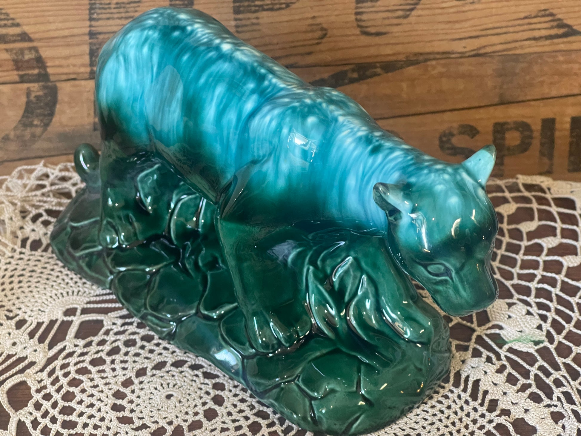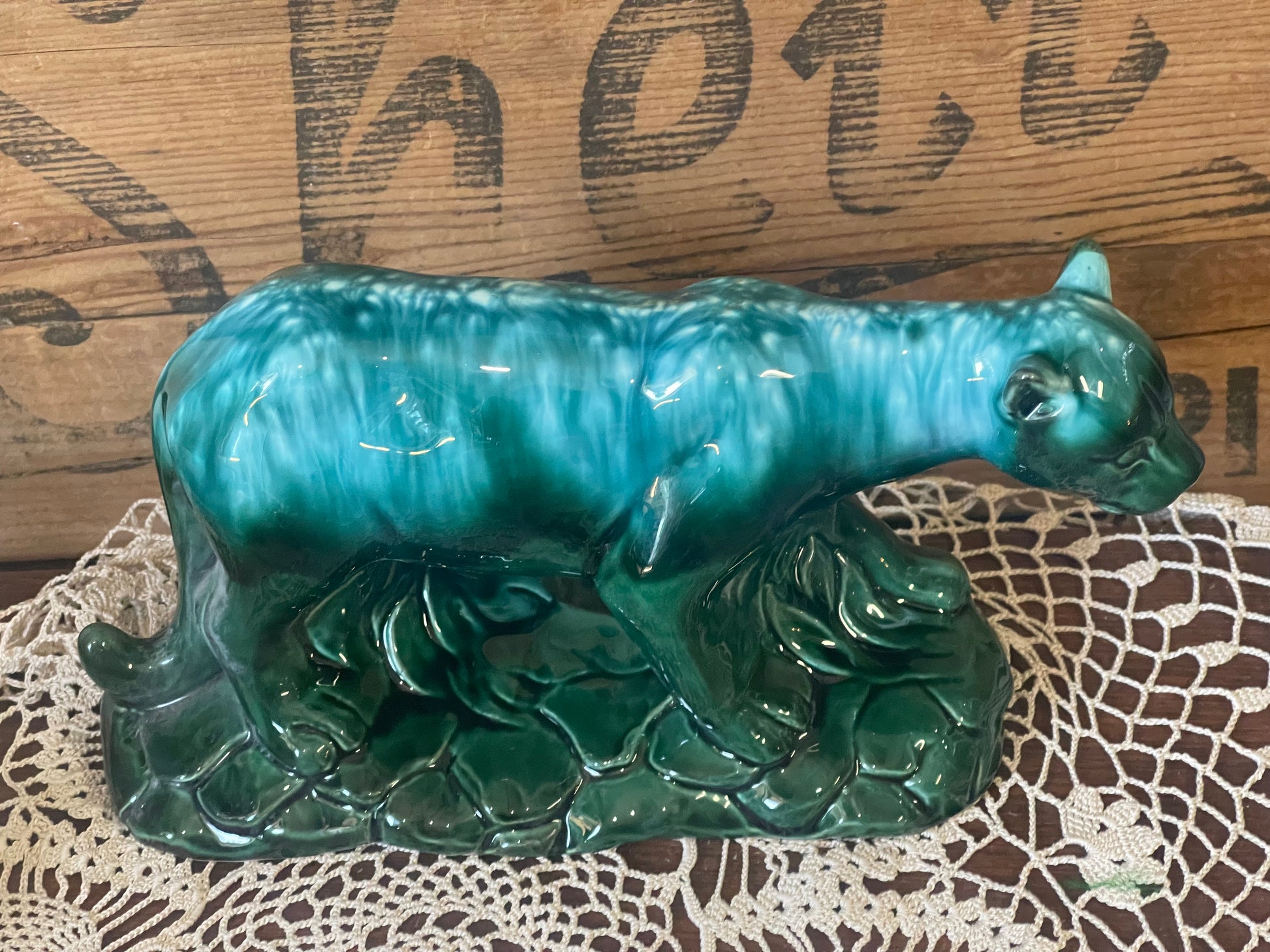 Vintage Pates Pottery Emerald Panther Figurine (c.1950s)