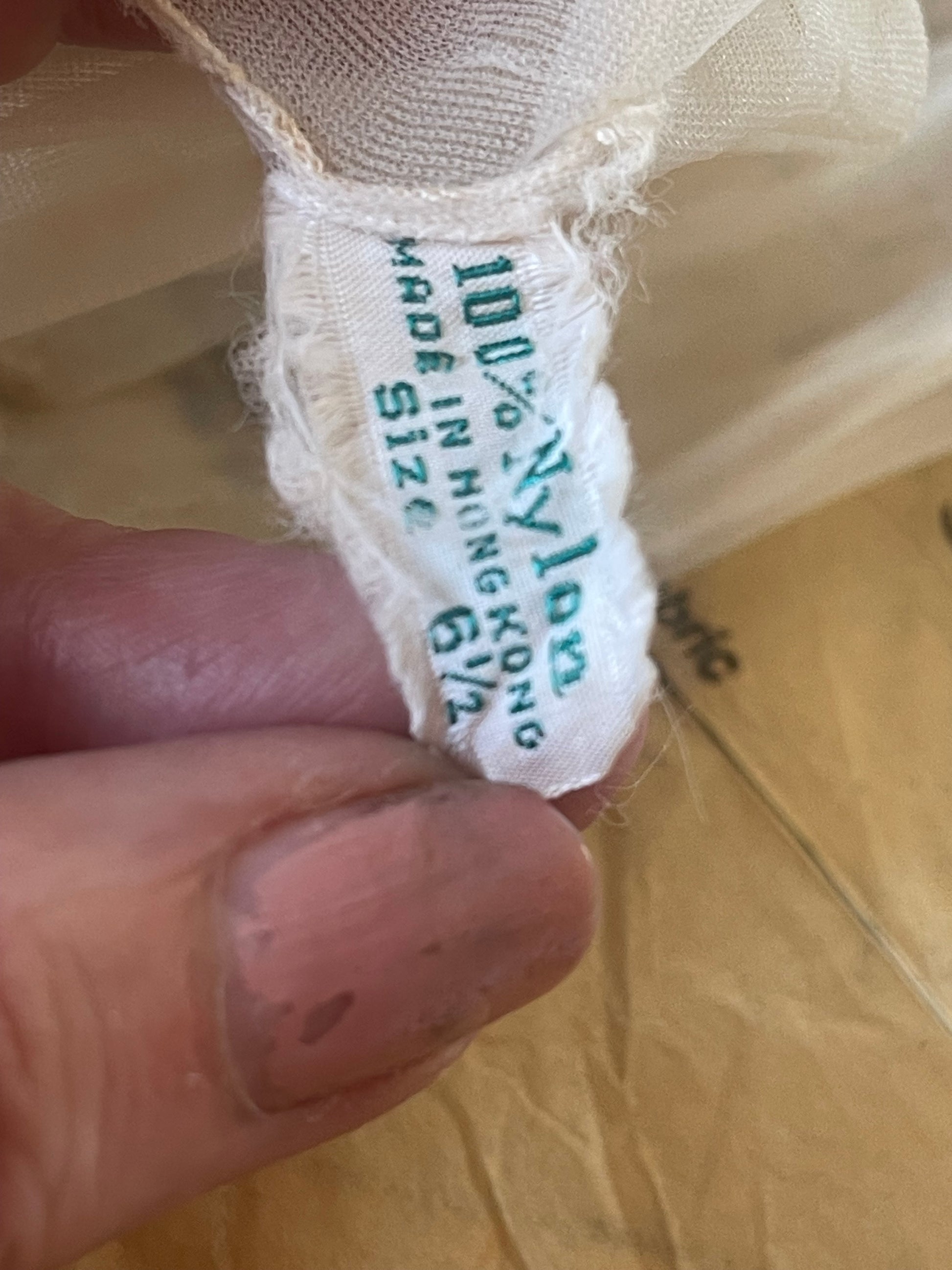 Vintage Sheer Nylon Gloves with Ruffled Pearl Cuff – 1950s/60s (Size 6½)